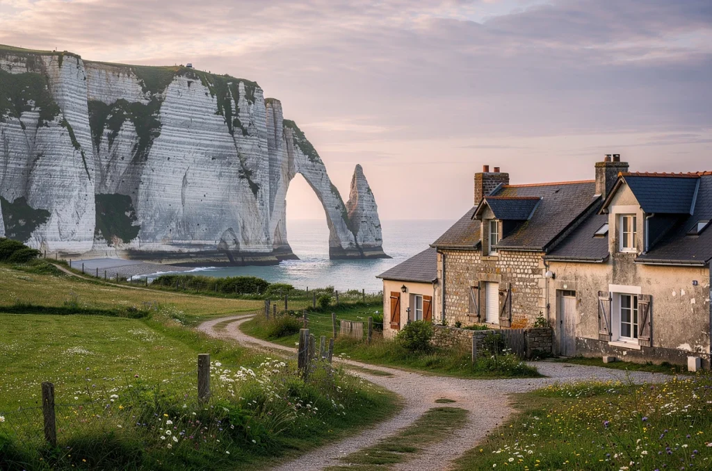 Poursuivre vers les falaises d’étretat enrichit l’expérience par la beauté sauvage des côtes normandes. Cet itinéraire traverse plusieurs villes et villages de caractère, dont certains abritent de petites églises romanes ou abbayes oubliées, propices à la contemplation.