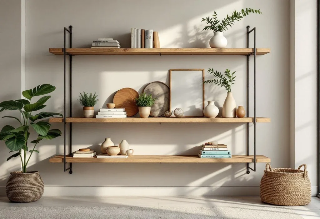 Le salon est une pièce où il n’est pas toujours évident d’organiser ses affaires tout en préservant une décoration harmonieuse. Les étagères murales apportent une réponse élégante, car elles exploitent la verticalité de l’espace. Cela permet de libérer le sol, de mieux structurer l’aménagement autour du canapé, de la télévision ou encore du coin lecture, tout en gardant une touche déco raffinée.